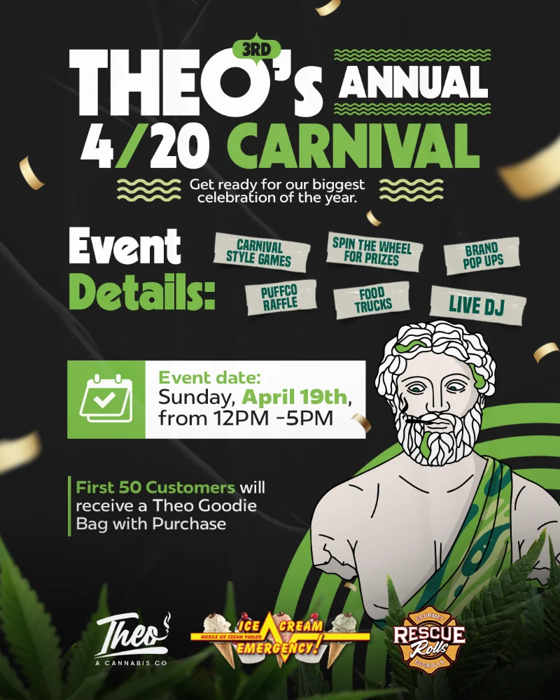 At Theo, there’s always something happening. From pop-up demos with top cannabis brands to seasonal celebrations and exclusive in-store deals, our events bring the community together and keep things fresh. Stop by, meet the reps, score deals and explore what’s new. There’s always a reason to visit.